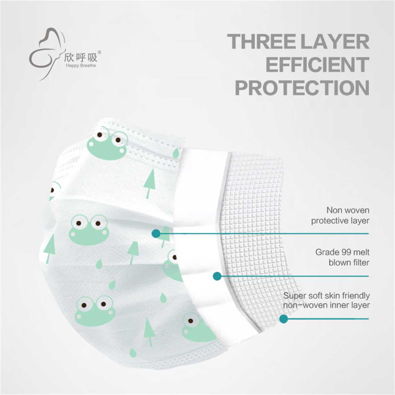 Produk ini terutamanya terdiri daripada fabrik bukan tenunan berbilang lapisan: lapisan luar adalah fabrik bukan tenunan renda pintal PP, lapisan penapis adalah fabrik bukan tenunan yang dicairkan dengan prestasi penapisan tinggi, dan lapisan mulut adalah fabrik bukan tenunan yang sangat lembut. ikatan kain bukan tenunan. Tali telinga lebar dan lembut. Jalur jambatan hidung diperbuat daripada bahan plastik dan sesuai dengan batang hidung.